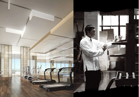 健身房中,設計師試圖以東方運動“精氣神”與西方“生命在于運動”結合來消弭文化沖突。