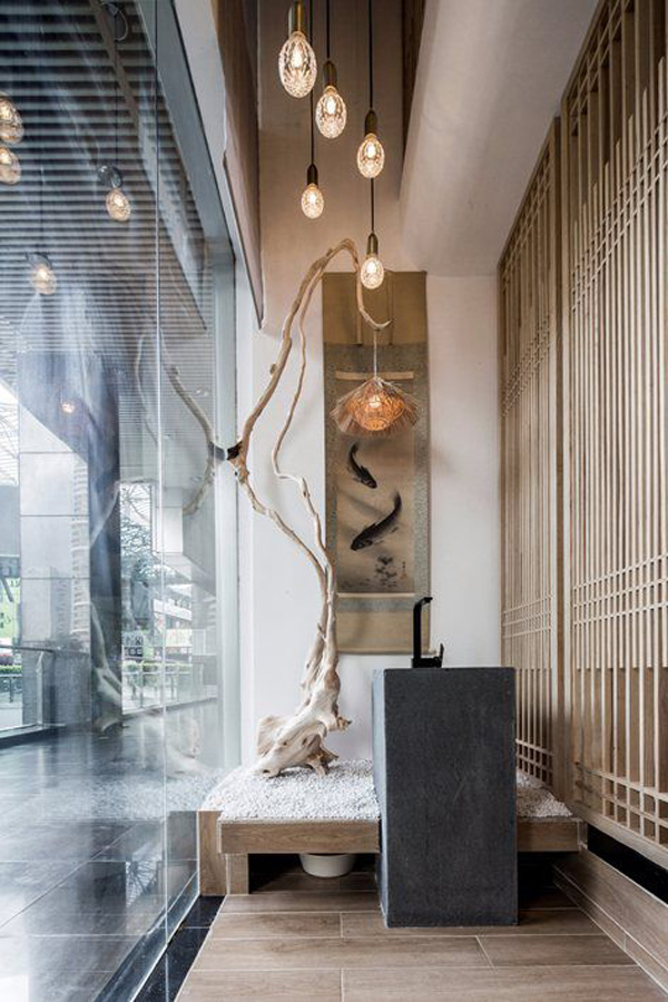 中國是一個(gè)講究意境的國家,無論是傳統(tǒng)的山水畫還是園林造園藝術(shù),都講究注重空間的營造。中式風(fēng)格酒店在大堂設(shè)計(jì)中往往運(yùn)用中國古典園林常用的多種造景手法加以渲染,如借景,框景,對景等,園林手法在室內(nèi)空間的運(yùn)用使室內(nèi)空間顯的更具有層次感,更加含蓄自然。