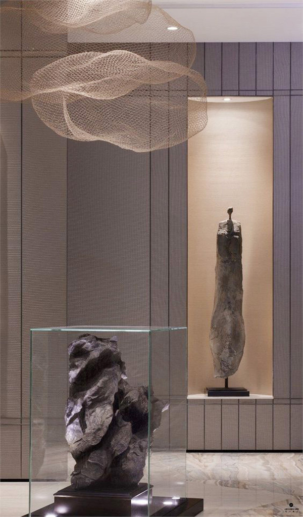 中國傳統(tǒng)文化元素是東方文化的一處獨(dú)特景觀和寶貴財(cái)富,酒店室內(nèi)設(shè)計(jì)風(fēng)格擅長在酒店空間中增加古典元素造型的家具,此外還頻繁運(yùn)用玩器、字畫、匾額及對聯(lián)等裝飾元素豐富墻面,在規(guī)劃格局上講究對稱、均衡等要素,賦予酒店濃郁中式風(fēng)格的韻味。