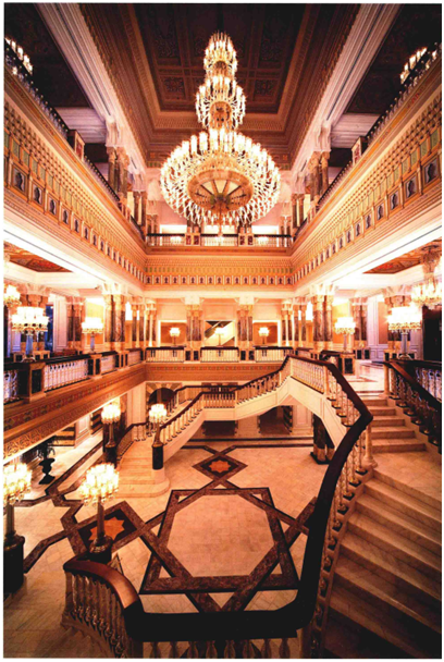 此酒店大堂為典型的土爾其風(fēng)格主題酒店設(shè)計(jì),整個(gè)大堂集現(xiàn)代化、奧斯曼風(fēng)格特色為一體,酒店大堂在造型、選材、燈光及裝飾品上都圍繞古典主義這一主題充分展現(xiàn)其精髄,營(yíng)造出尊責(zé)、奢華的感覺。一進(jìn)大堂,天花懸吊的水晶燈金光燦燦,讓整個(gè)空間仿佛都沾上皇族的金色氣息,19世紀(jì)的家具、地毯和高大的圓柱,讓人一入內(nèi)就能感受到古典而恢弘的皇家風(fēng)范,大堂休息區(qū)精致的吊燈、絲絨軟墊躺椅與黃金飾物,再點(diǎn)綴著鮮花,給人眼前一亮的感覺,奢華而有活力。